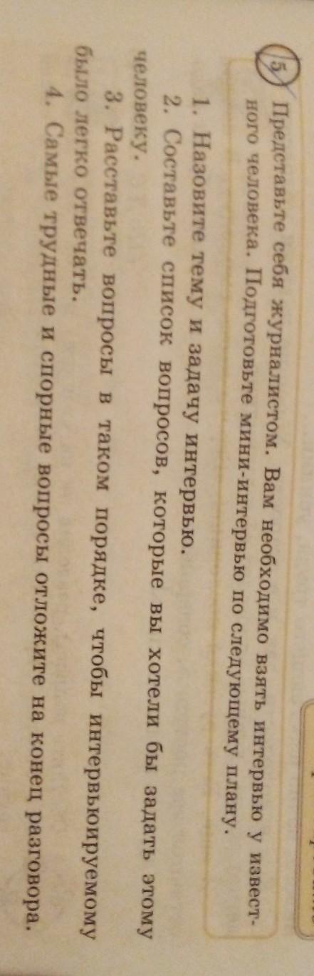 Представьте себя журналистом.Вам необходимо взять интервью у известного человека.Подготовьте мини интервью по следующему плану