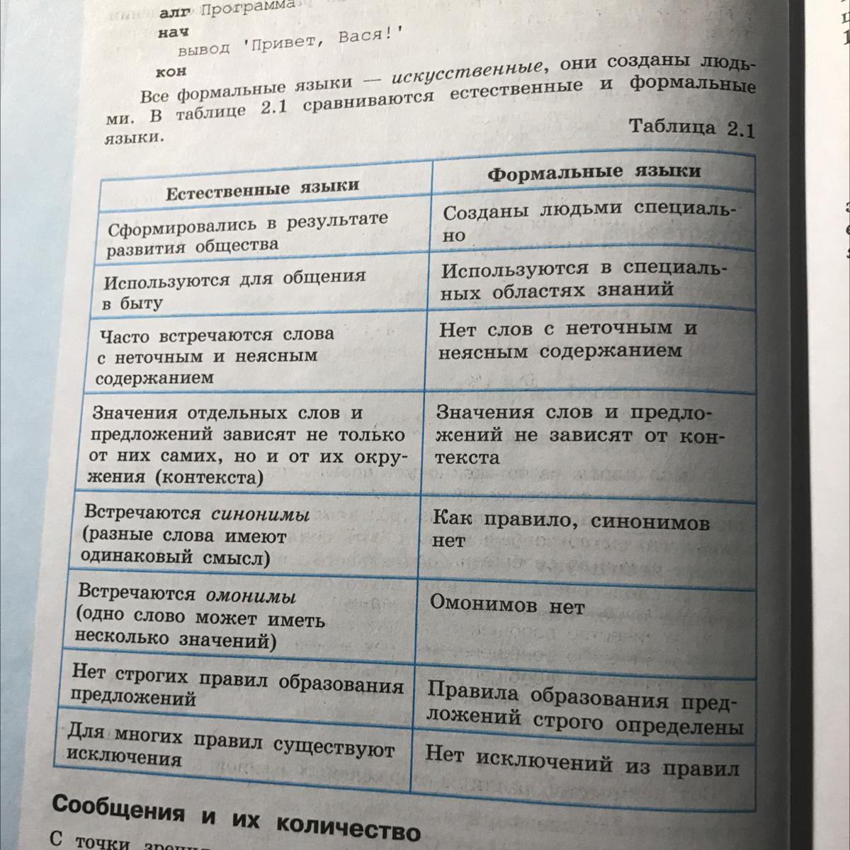 СРОЧНО!!ИНФОРМАТИКА 8 КЛАСС!!выберите из таблицы 2.1 те свойства естественных языков,которые затрудняют и не позволяют полностью автоматизировать перевод с одного языка на другой.как вы рассуждали?