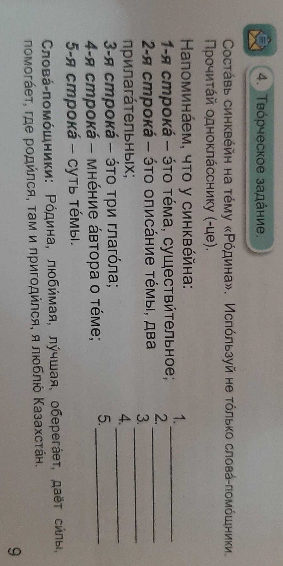 Составь синквейн на тему (Родина) Используй не только слова-помощники.
