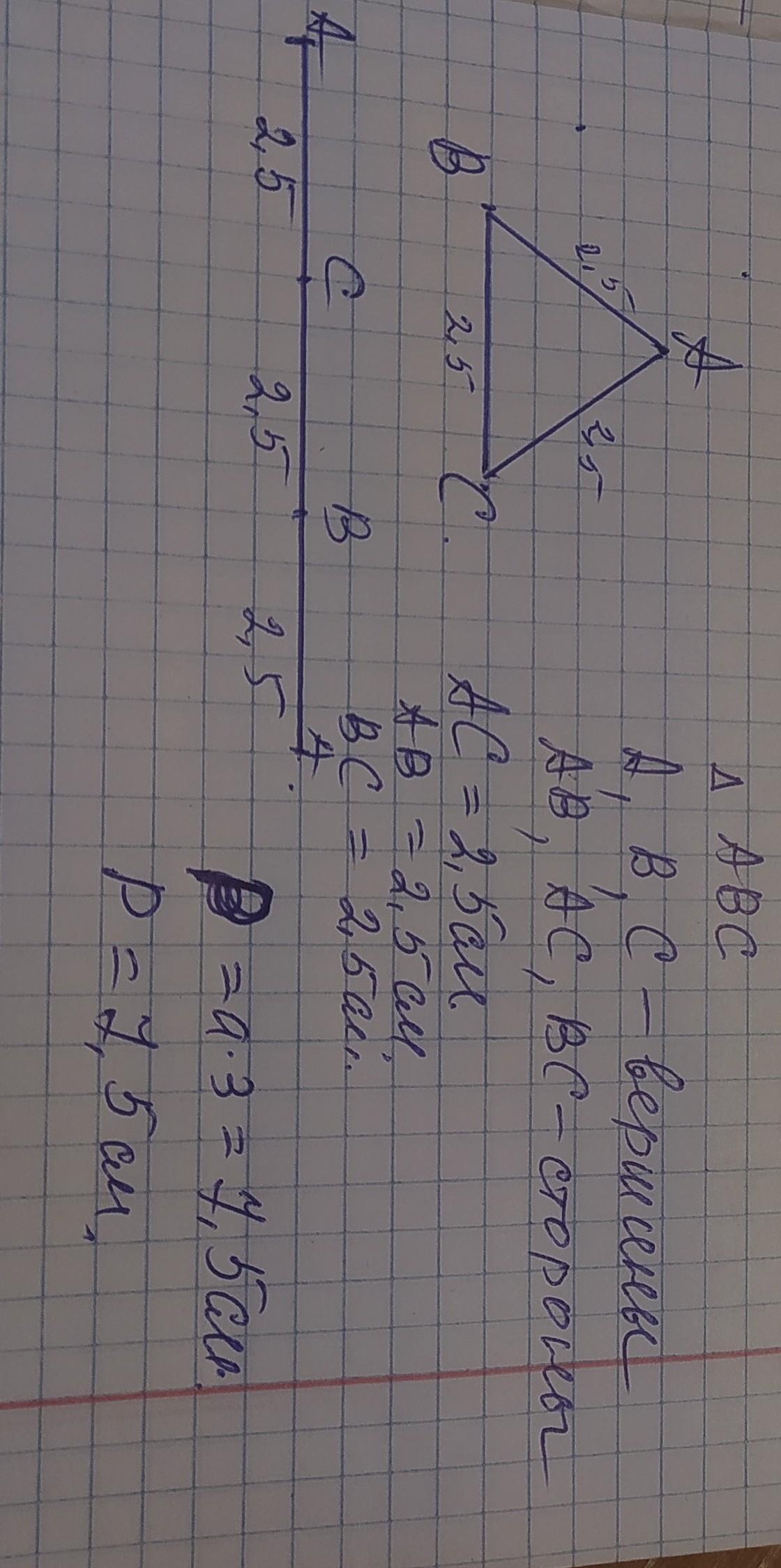Начертите в тетради треугольник и обозначьте его. Запишите его вершины и стороны. Измените при помощи линейки стороны треугольника и найдите периметр