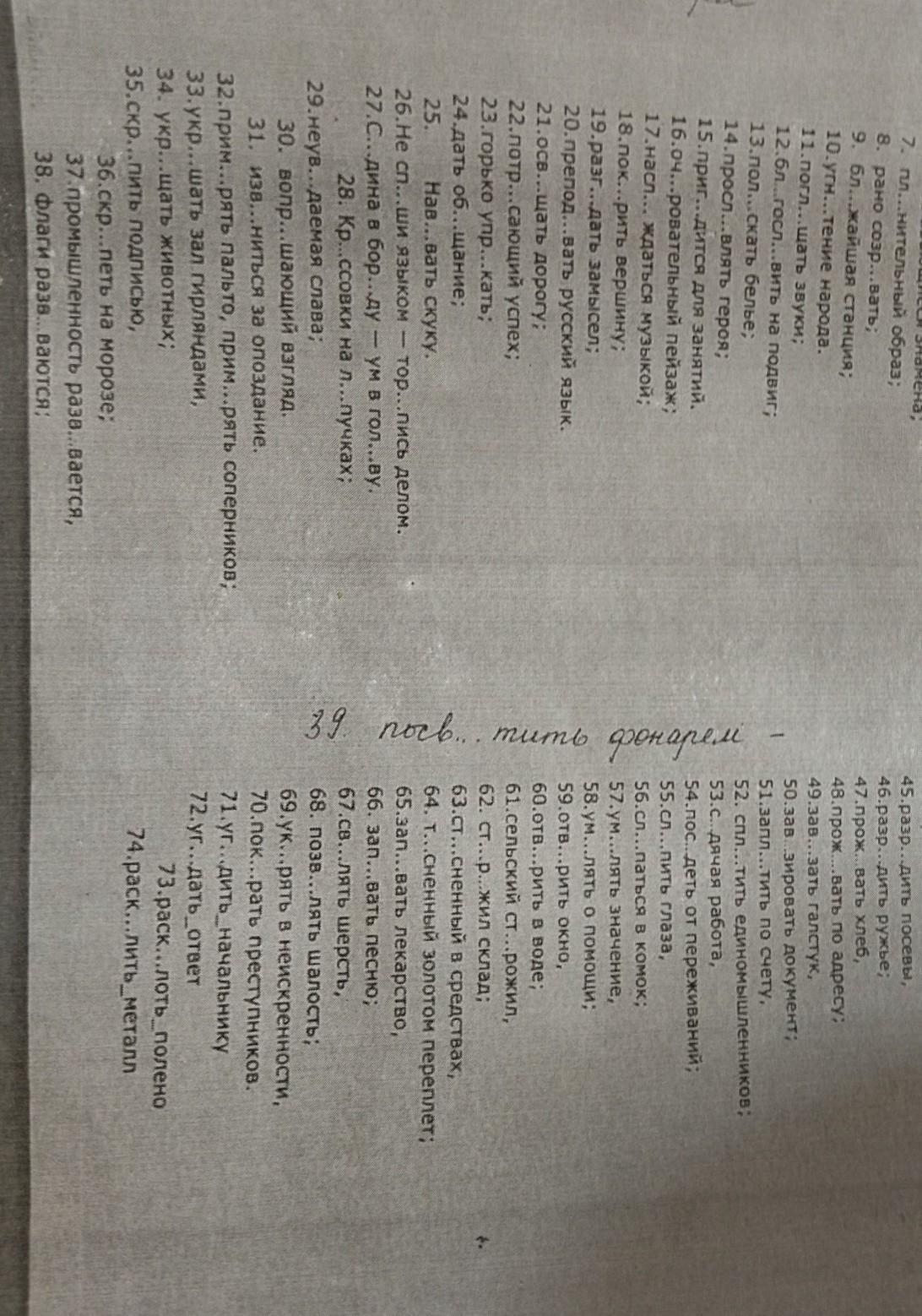 Ответ: Пленительный образ, рано созревать, ближайшая станция, угнетение народа, поглащать звуки, благославить на подвиг, полоскать белье, прославлять героя, пригодится для занятий, очаровательный пейзаж, наслаждаться музыкой, покорить вершину, разгадать замысел, преподавать русский язык, освещать дорогу, потрясающий успех, горько упрекать, дать обещание, навевать скуку, спеши, торопись, седина, бороду, голову, кроссовки на липучках, неувядаемая слава, вопрошающий взгляд, извиниться за опоздание, прмерять пальто, примирять соперников, украшать, урощать, скрепить, скрипеть, развивается, развиваются