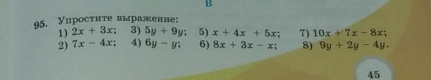 Ответ: 1) 5x; 2) 3х; 3) 14у; 4) 5у; 5) 10х; 6) 10х; 7) 9х; 8) 7у.