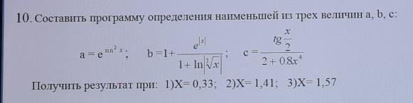 задание на фото Номер 10. надо написать программу В ПАСКАЛЕ, сначала найти значения, а потом сравнить. Сравнить то я смогу сам, а вот значения a,b,c узнать не могу