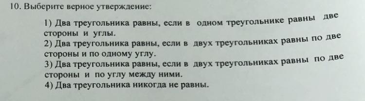 3) Два треугольника равны, если в двух треугольниках равны по две стороны и по углу между ними.