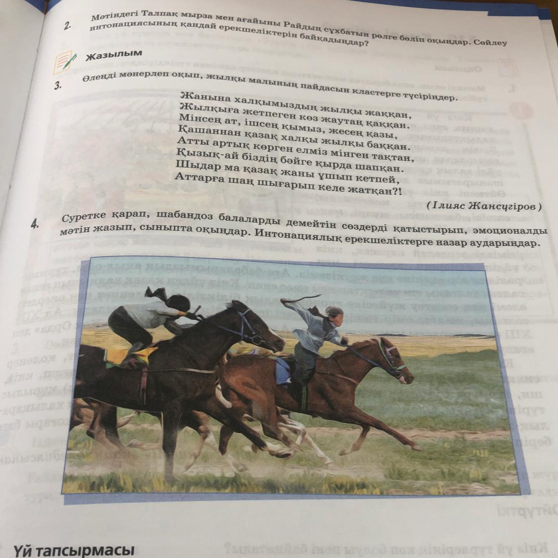 мәтін жазып, сыныпта оқыңдар. Интонациялық ерекшеліктерге назар аударыңдар.