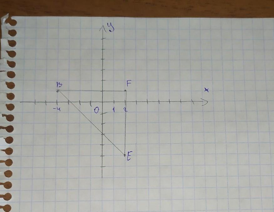 побудувати систему координат і позначити точки :F(2,1) ;B(-4;1);E(2;-5), з'єднати щоб утворився трикутник