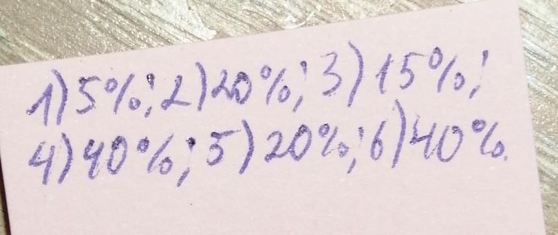 54. Сколько процентов составляет: 4) 2,8 км от 7 км; 5) 1,2 м от 6 м; 6) 9,6 м от 24 м? 1) 5 кг от 100 кг; 2) 6т от 30 т; 3) 4,5г от 30 г;