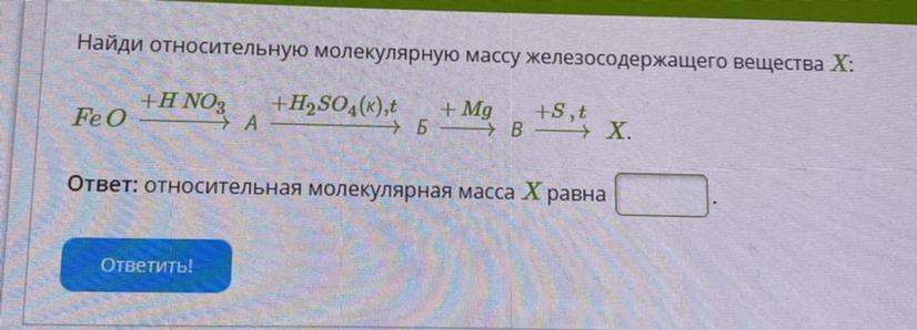 Найди относительную молекулярную массу железосодержащего вещества X:
