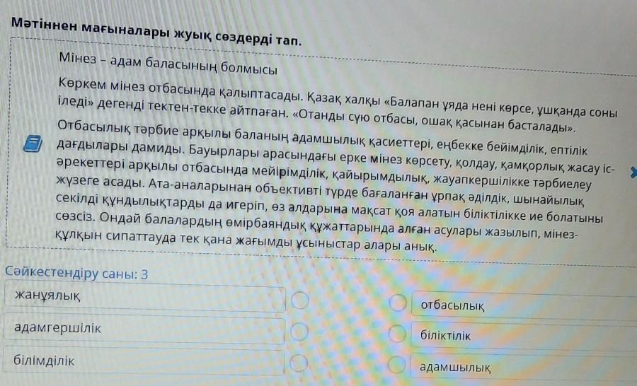 секілді құндылықтарды да игеріп, өз алдарына мақсат қоя алатын біліктілікке ие болатыны