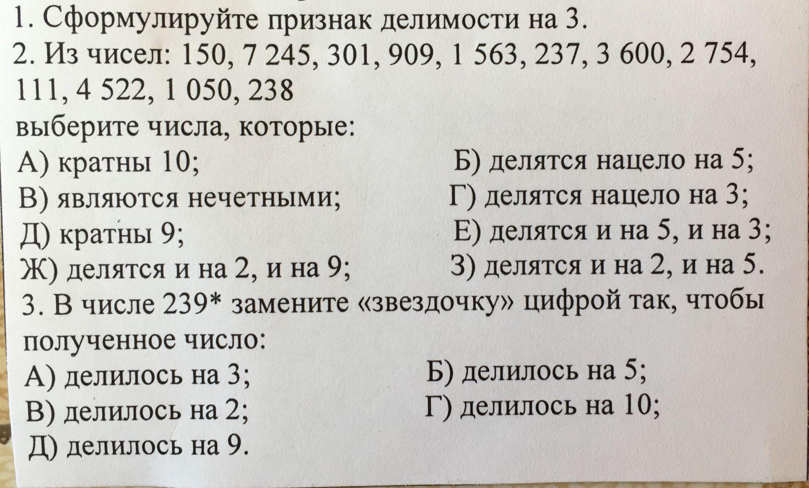 Г)÷3: 150 , 7 245, 909, 1 563, 237, 3 600, 111, 1 050