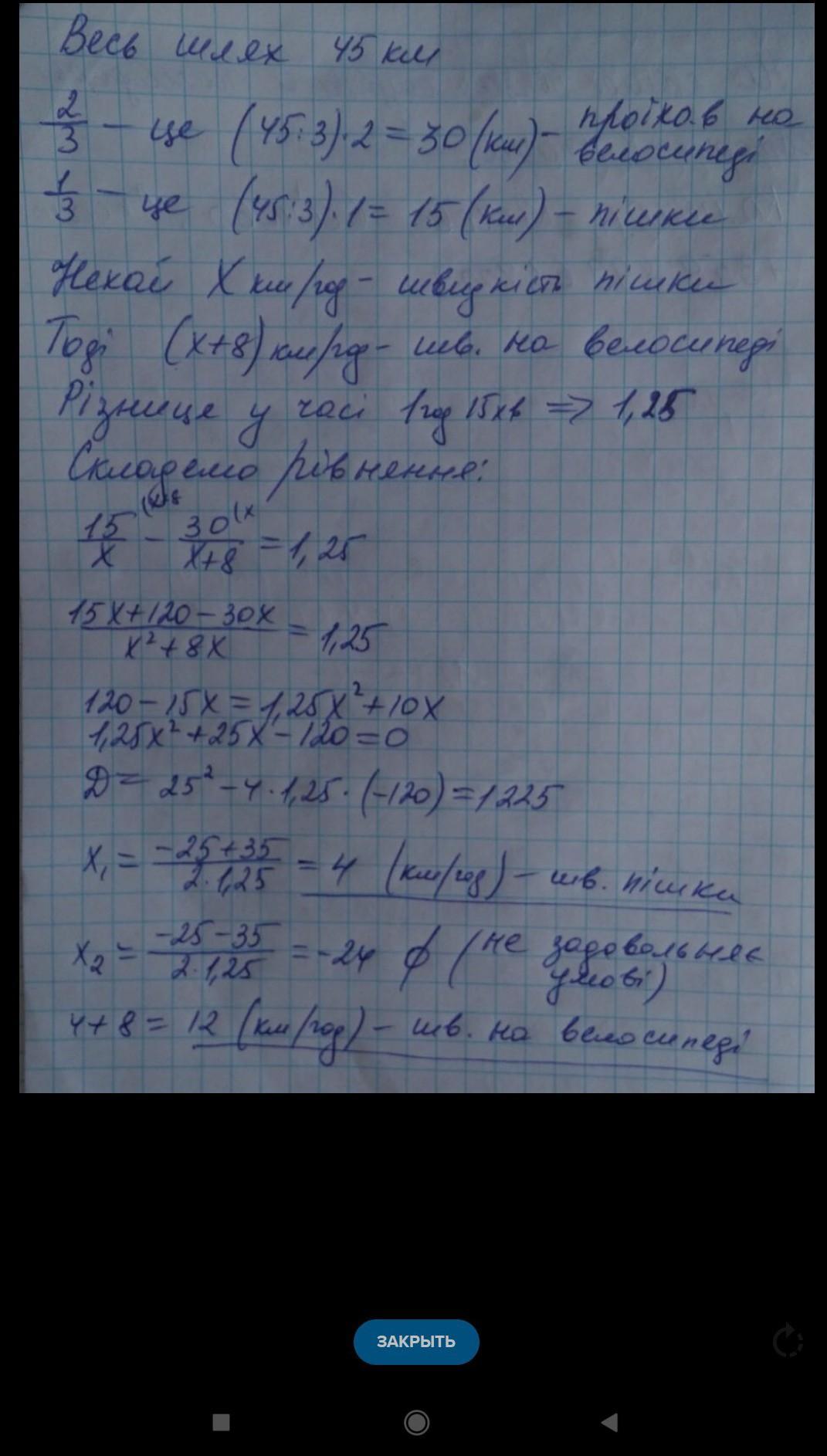 Турист пройшов 2/5 шляху пішки, 45% проїхав на велосипеді, а решту - пробіг.