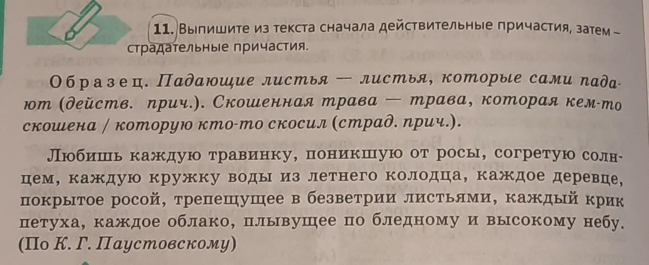 11. Выпишите из текста сначала действительные причастия, затем страдательные причастия.