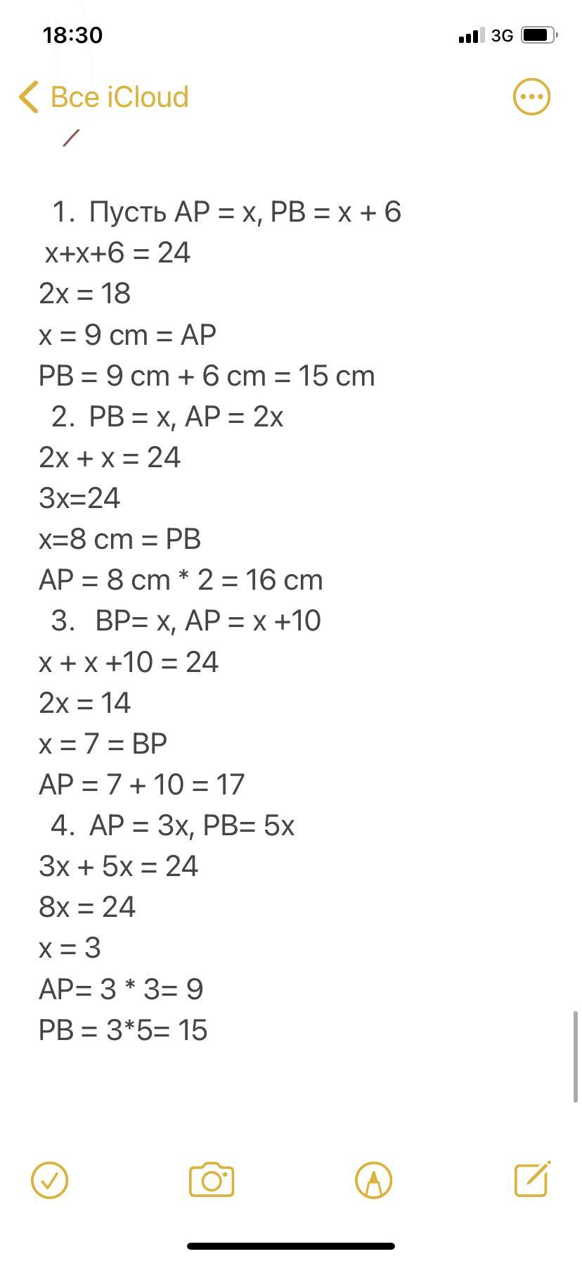Точка Р належить відрізку AB = 24 см. Знайдіть довжи-