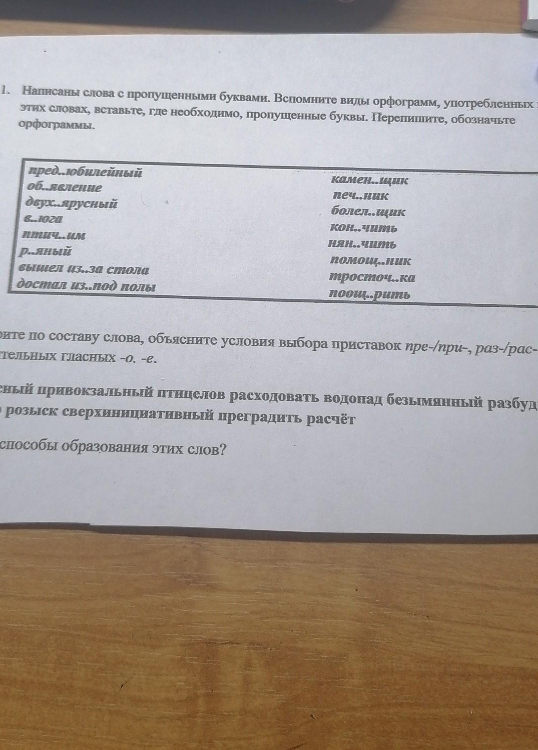 Предъюбилейный, объявление, двухъярусный, вьюга, птичьим, рьяный, вышел из-за стола, достал из-под полы, каменщик, печник, болельщик, кончить, няньчить, помощник, тросточка, поощрить.