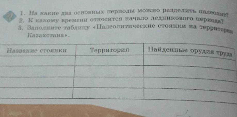 3. Заполните таблицу «Палеолитические стоянки на территории