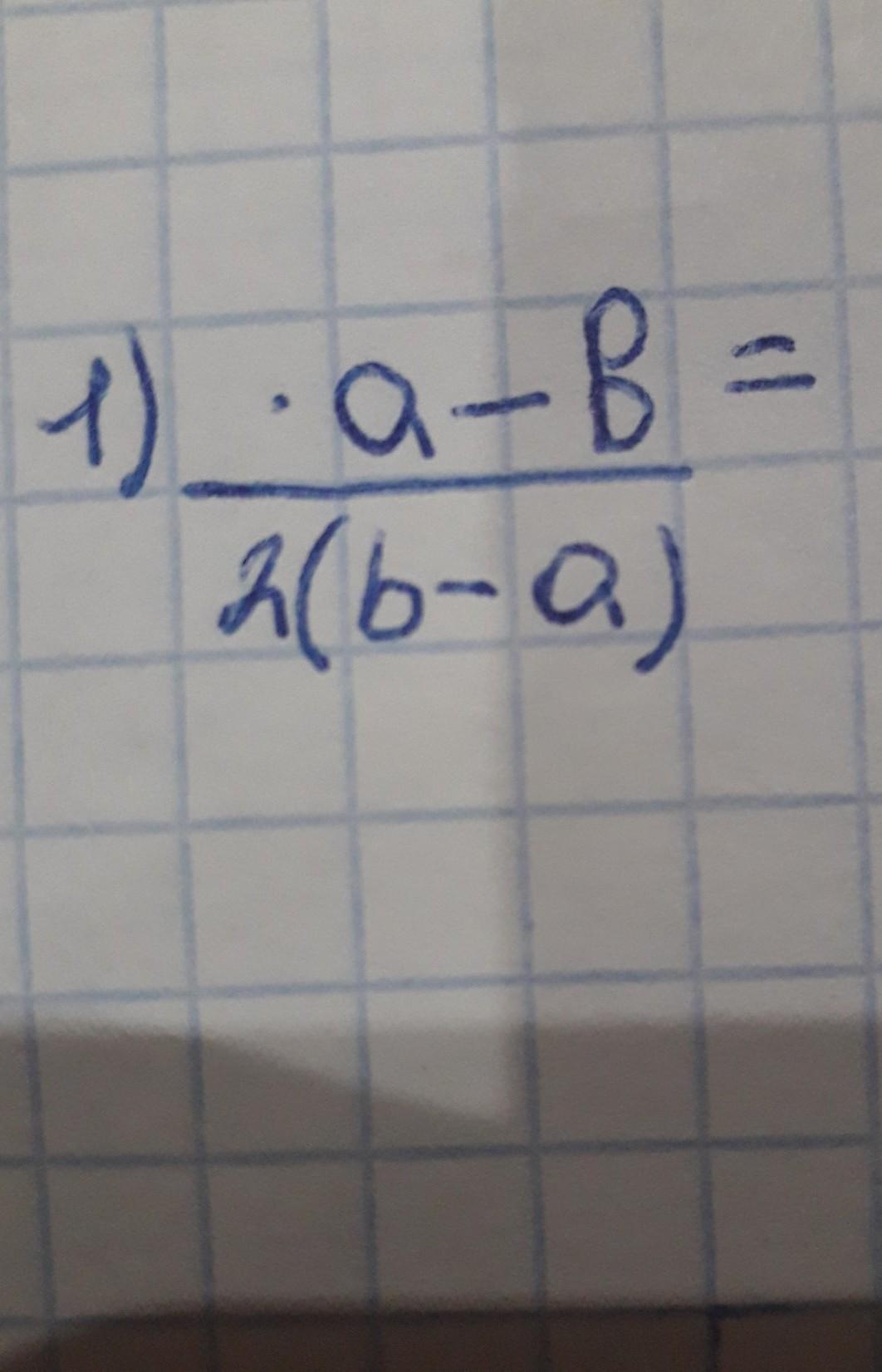 Объяснение:a-b/2(b-a)= -2(a-b)/-2*2(b-a)=2a+2b/-4(b-a)=2b-2a/-4(b-a)=-2/4 А и Б мы вычоркиваем=-0,5