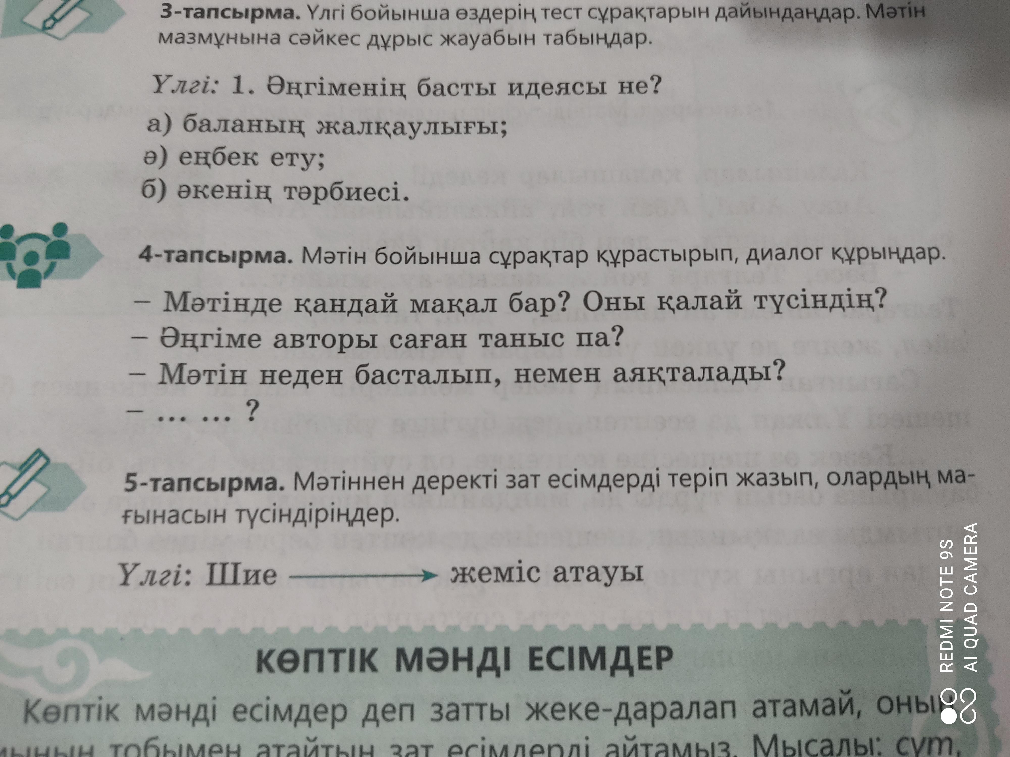 - Ия, тусиндим. Сенин ойынша автор матин аркылы не айткысы келди?