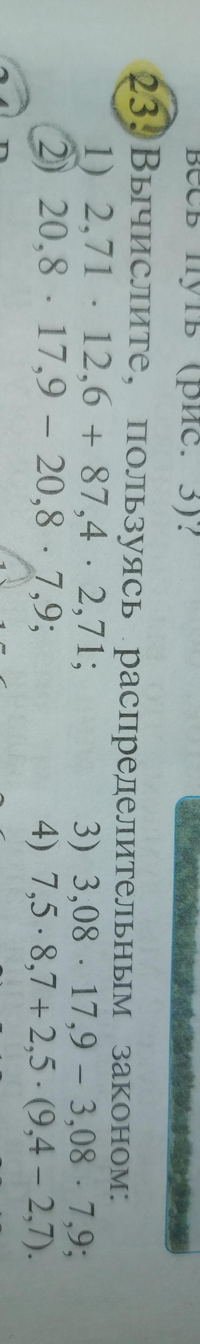 4) 7,5 * 8,7 + 2,5 *( 9,4 - 2,7 ) = 7,5 * 8,7 + 2,5 * 9,4 - 2,5 * 2,7 = ( 7,5 * 8,7 - 2,5 * 2,7 ) +