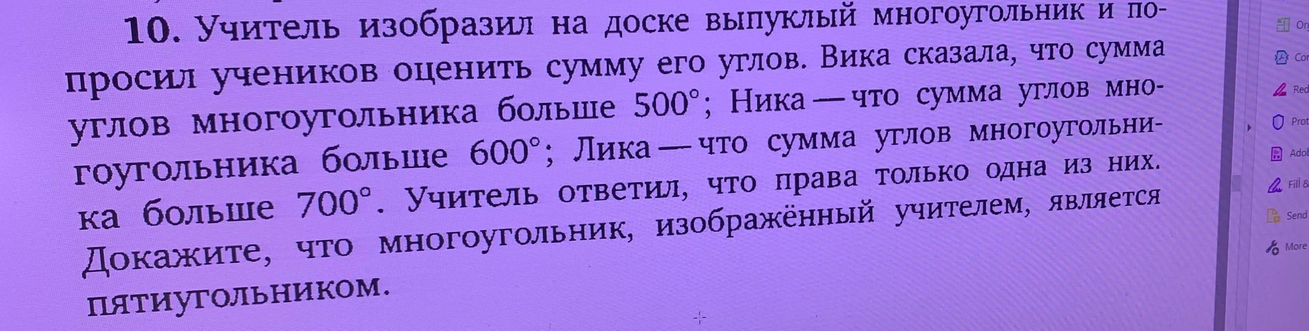 Только сумма углов пятиугольника лежит между 500° и 600°.