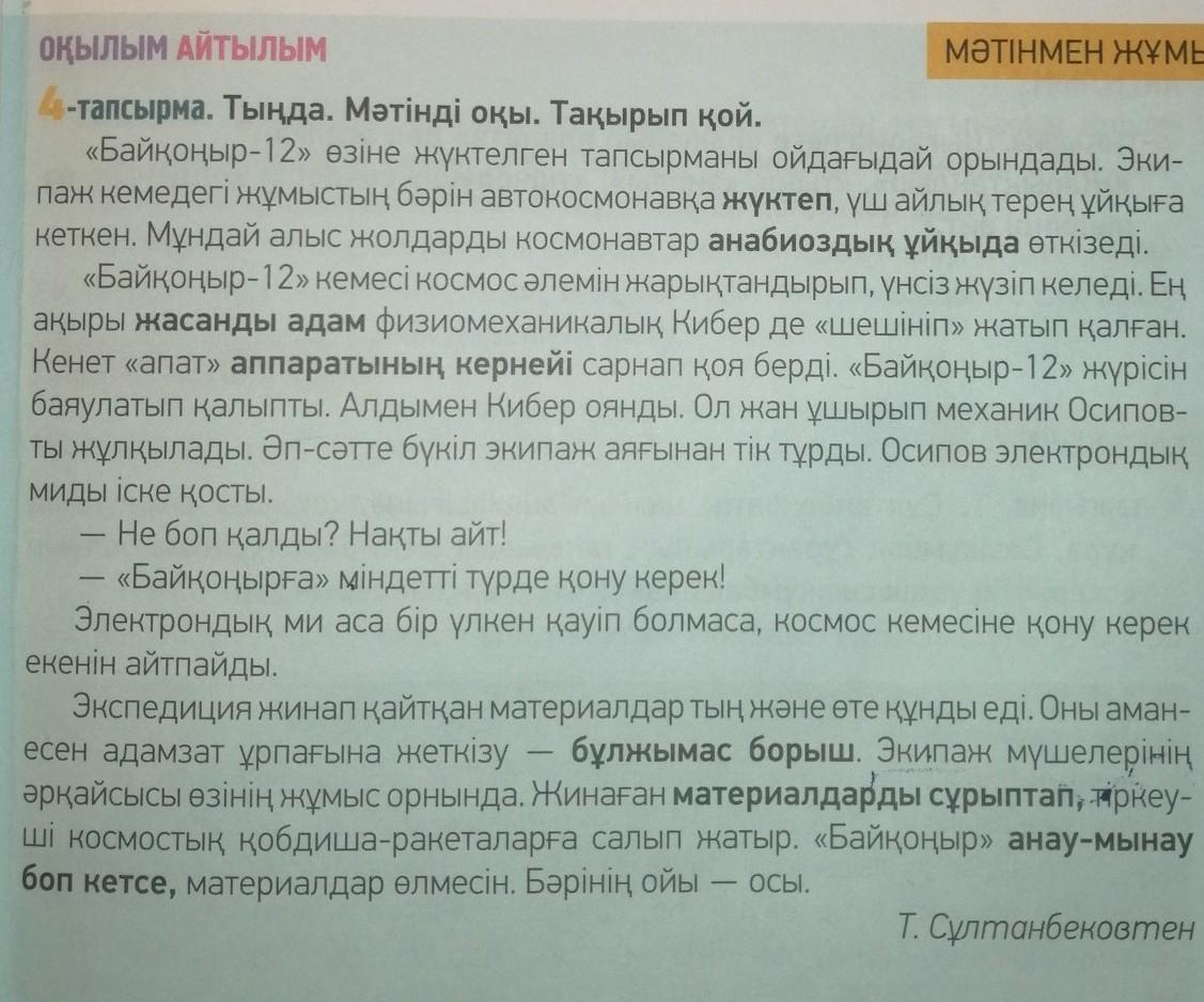 1)Байконыр 12 озине берилген тапсырманы жақсы орындады