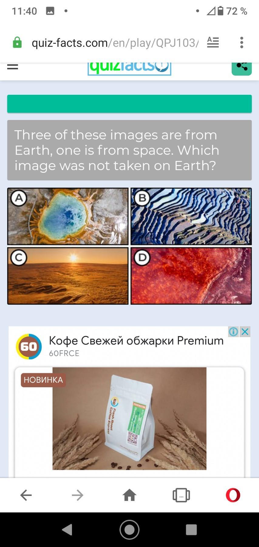 Перевод: Три из этих изображений сделаны с Земли, одно - из космоса. Какой снимок НЕ был сделан на Земле?