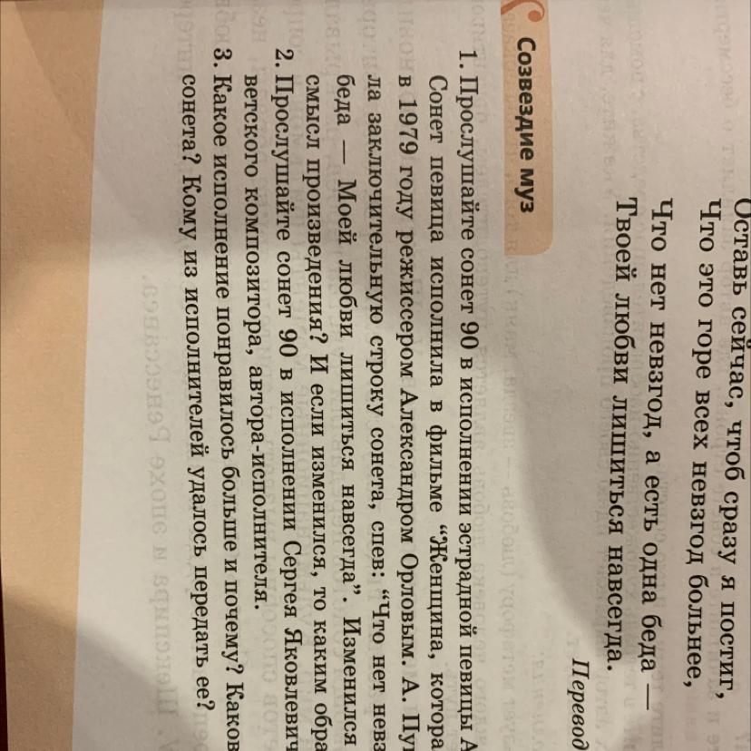 1. Прослушайте сонет 90 в исполнении эстрадной певицы Аллы Пугачевой.