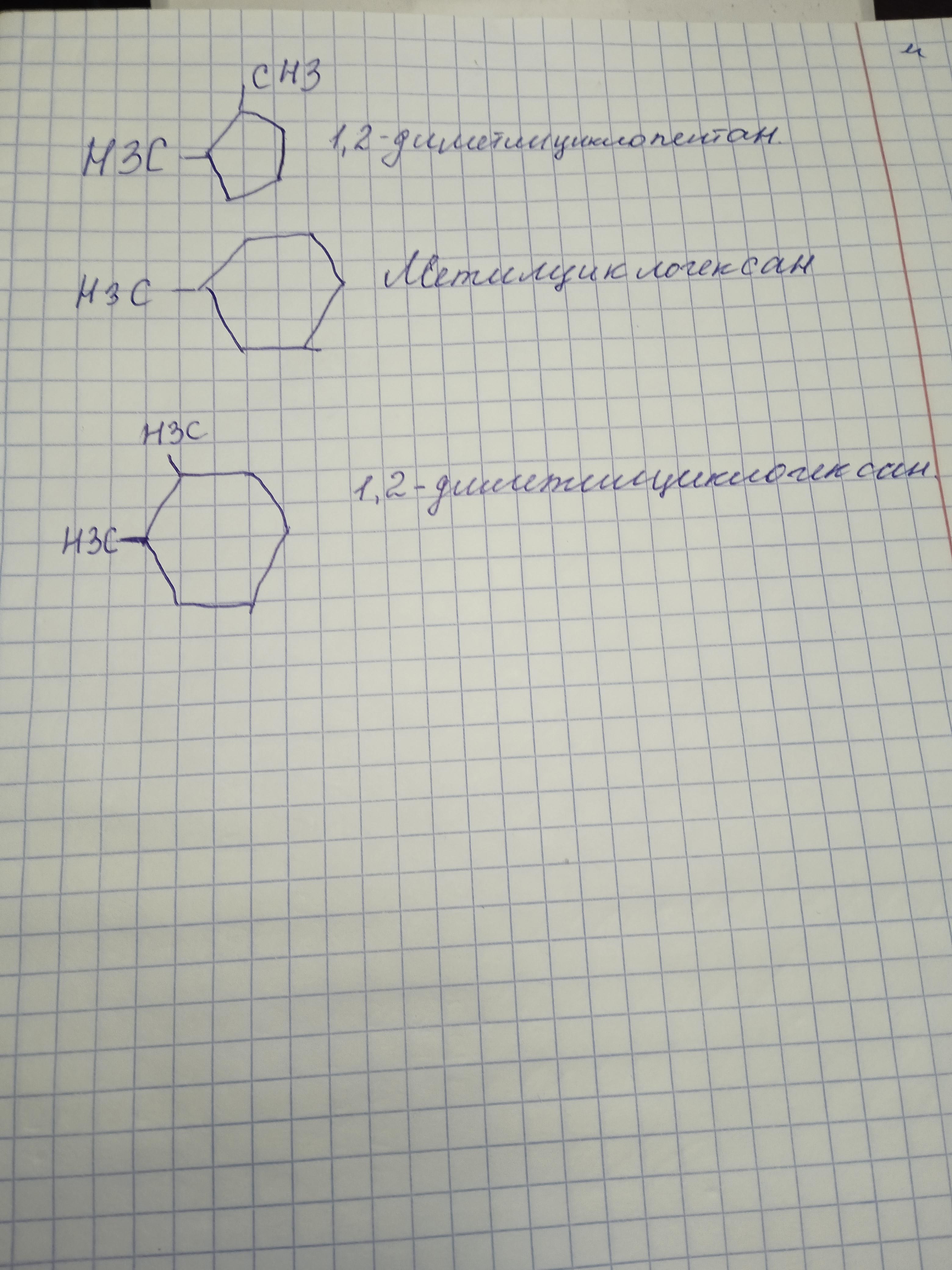 укажите структурные формулы - 1, 2 - диметилциклопетана; метилциклогексана, 1, 2 - диметилциклогексана