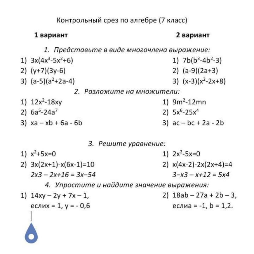 2 вариант пожалуйста,очень нужно!!!Алгебра срез за 7 класс