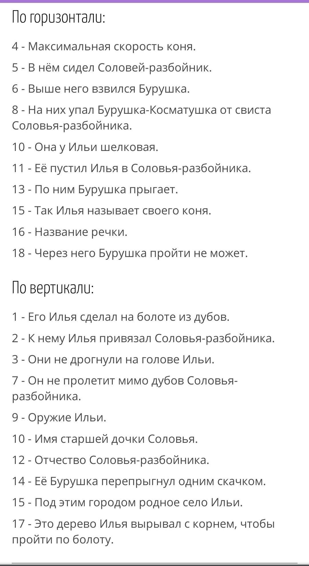 сделать красворд на былину Илья Муромец и соловей разбойник