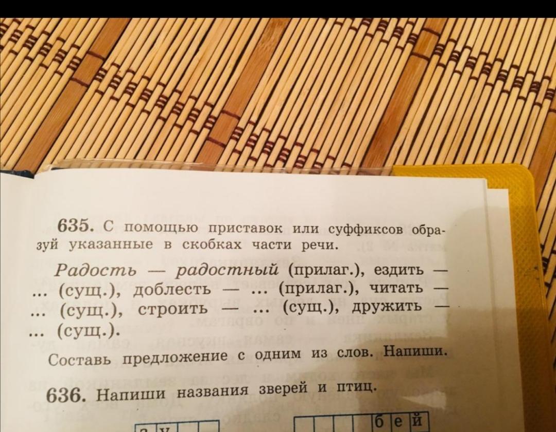с помощью приставок или суффиксов образуй указанные в скобках части речи