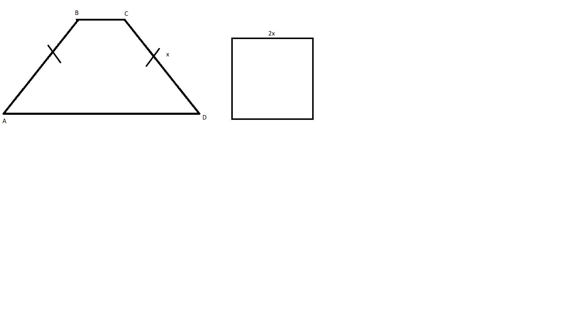 Вычислите периметр квадрата, сторона которого вдвое больше наклонной стороны равнобедренной трапеции с периметром 72 см и суммой измерений оснований, равной сумме измерений наклонных сторон.