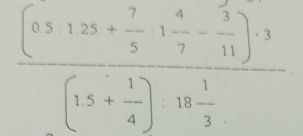 (5/10÷125/100+7/5÷11/7-3/11)•3делить(1целый5/10+1/4)÷55/3=