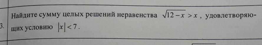 Целые решения из полученного промежутка складываем и находим сумму: -6-5-4-3-2-1+0+1+2= -18