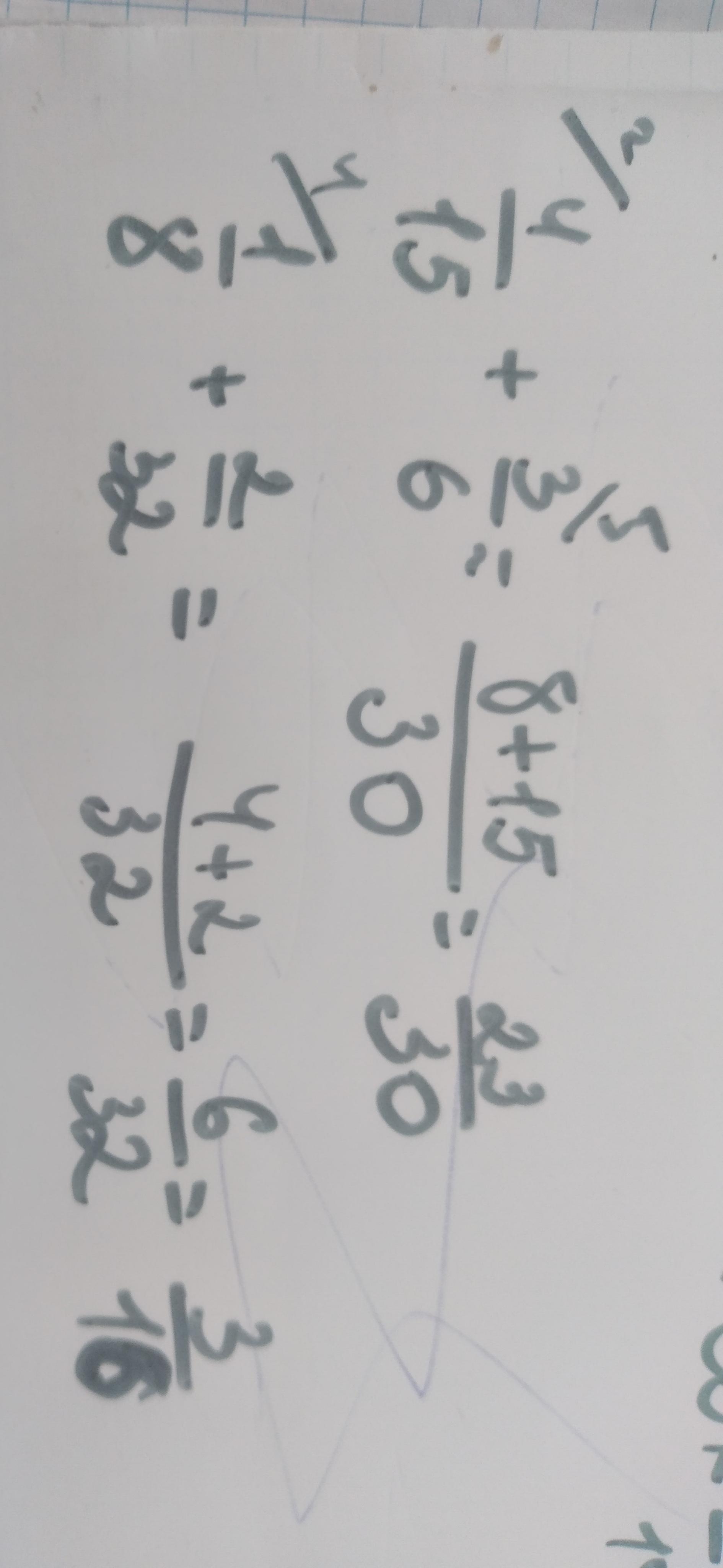 б) 1/8+2/32 = 4/32 + 2/32= 6/32=3/16