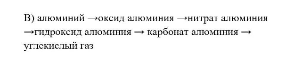 алюминий=оксид алюминия=сульфат алюминия=гидроксид алюминия=карбонат алюминия=углекислый газ