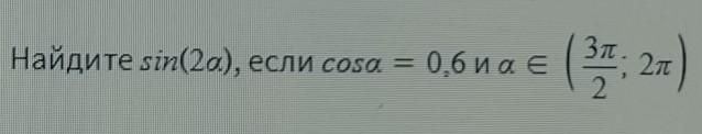 cosα = 0,6 , αЄ ( 3π/2 ; 2π ) ; sin2α - ?