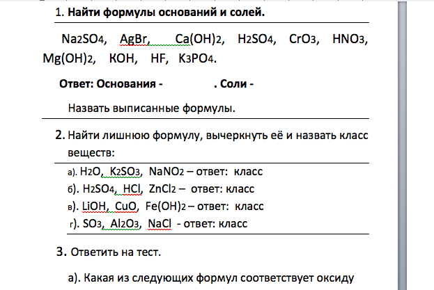 Основания :Ca(OH)2 , Mg(OH)2 , KOH