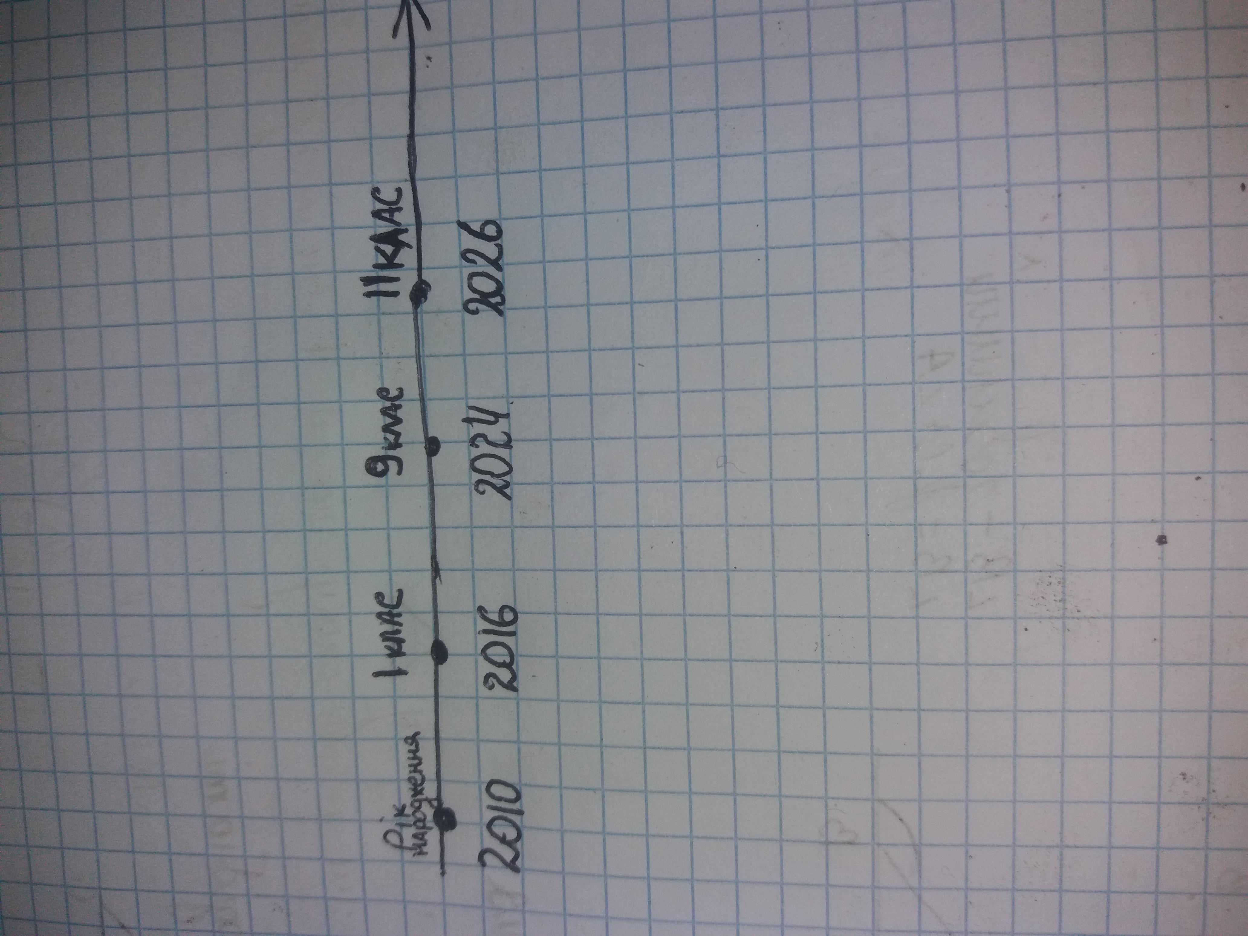 Дитина народилася в 2010 р., пішла до школи 2016. Вирахуйте рік коли вони закінчить школу за допомогою лінії часу.