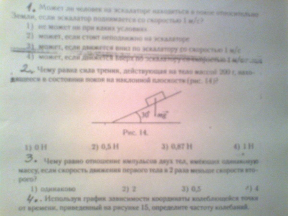 Чему равна сила трения действующая на тело массой 200 г, находящееся в состоянии покоя на наклонной плоскости?