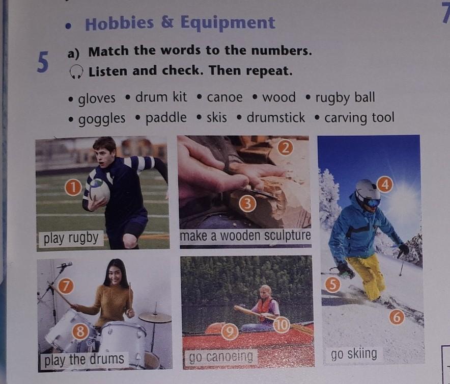 6. You want to try the hobbies in Ex. 5a. Act out exchanges, as in the example. A: Why don't we play rugby? B: That's a good idea. What do we need? A: We need a rugby ball. B: OK. Let's get one.