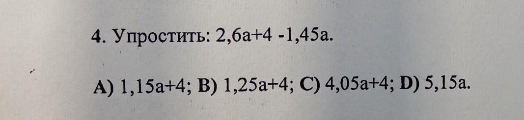 2,6а -1,45а +4=1,15а +4