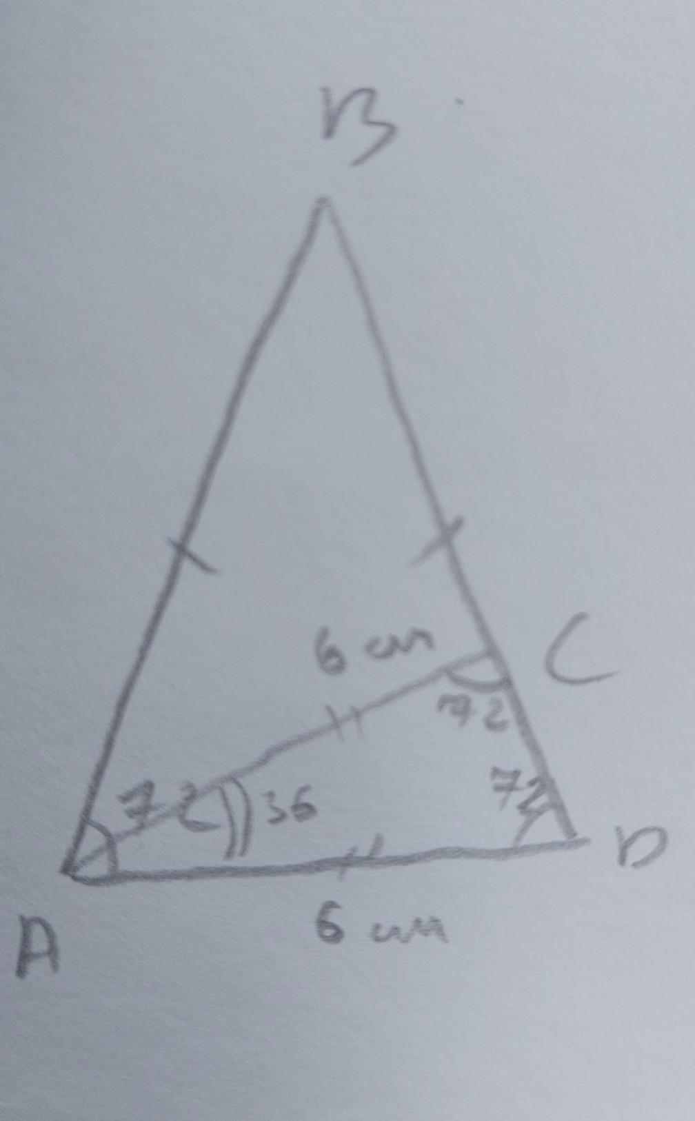 Угол при основе равнобедреного угла триугрльника равен 72 градуса, а бесиктриса угла при основе равна 6 см. Найти основу триугольника