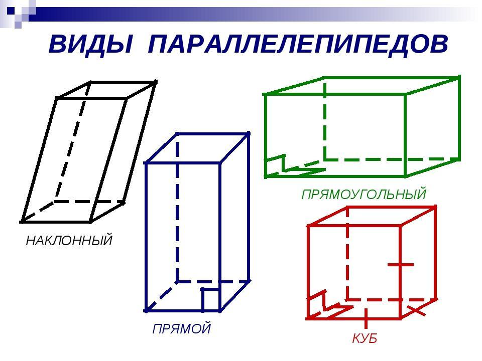 Параллелепипед — многогранник, у которого шесть граней и каждая из них параллелограмм , геометрическая фигура в пространстве; шестигранник, гранями которого являются параллелограммы.