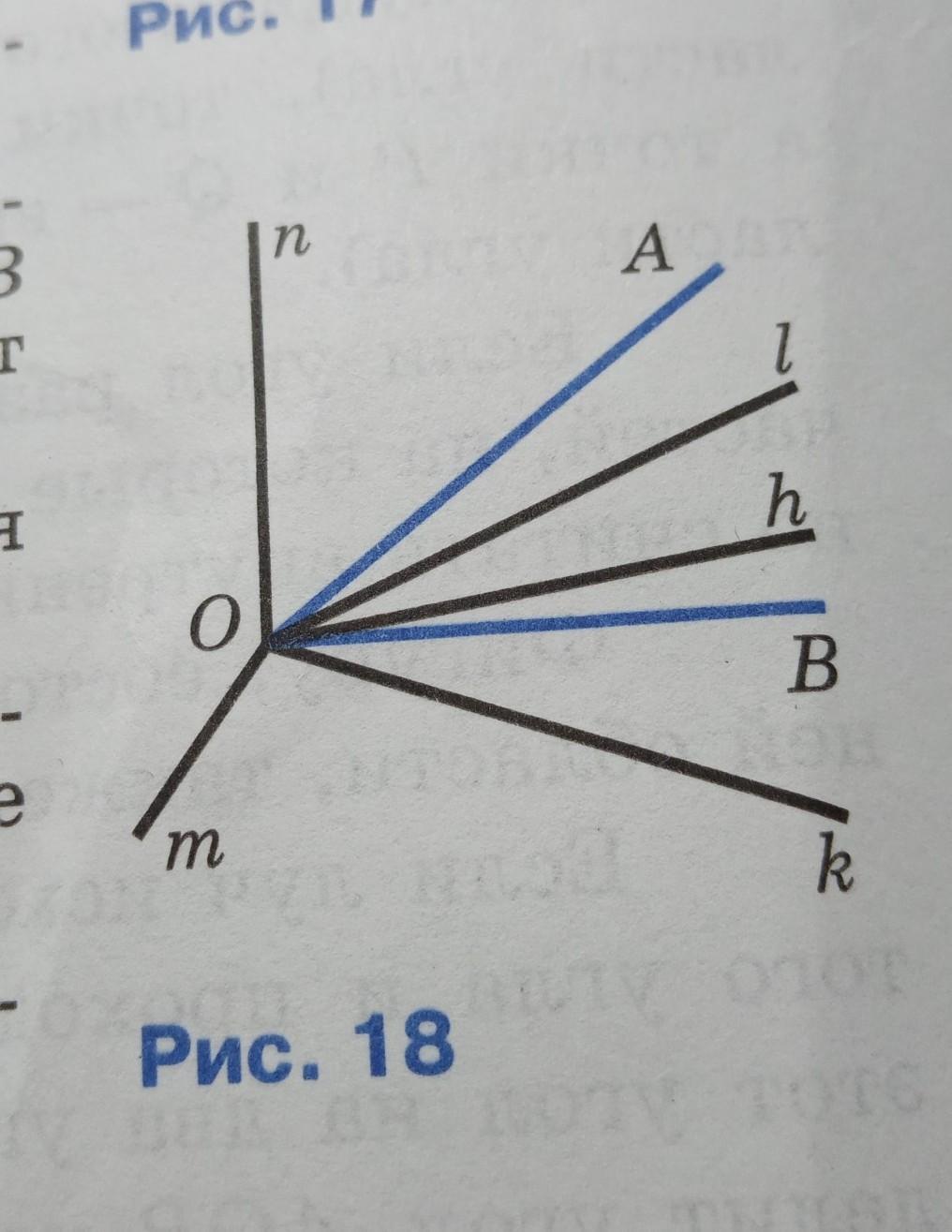 Лучи l, h делят угол AOB на 2 угла