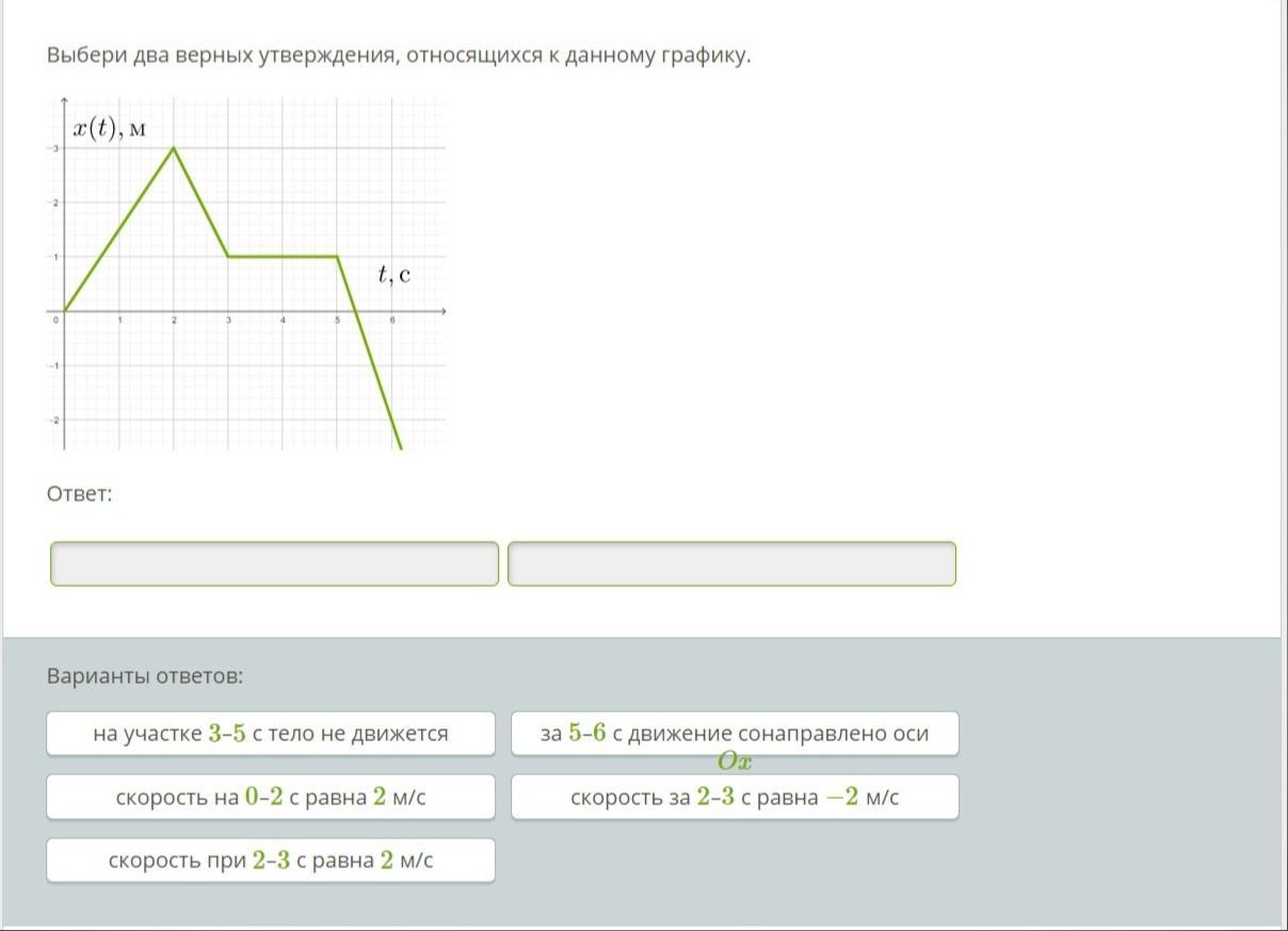 скорость 0-2 равна 2м/с и за 5-6 с движением