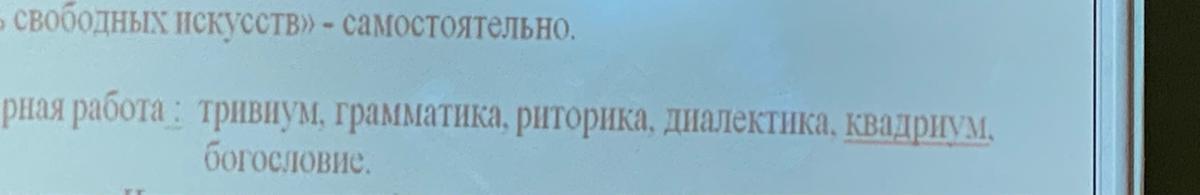 5)Квадри́виум, или квадри́вий (лат. quadrivium — «четырёхпутье») — общее название системы точных наук в Средние века. Квадривиум включал 4 дисциплины, математизированные на то время: