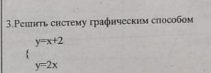 у = 2х значит первое переписываем, а под второе подставляем значение первого; х + 2= 2х ; переносим х в левую часть, а числа в правую с противоположным знаком; х-2х = -2 ; -х = -2 ; х=2
