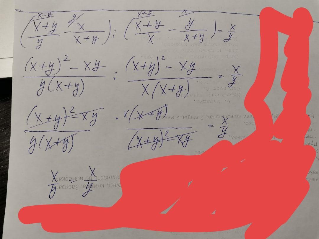 в обеих скобках дроби приводим к общему знаменателю, потом делим и сокращаем