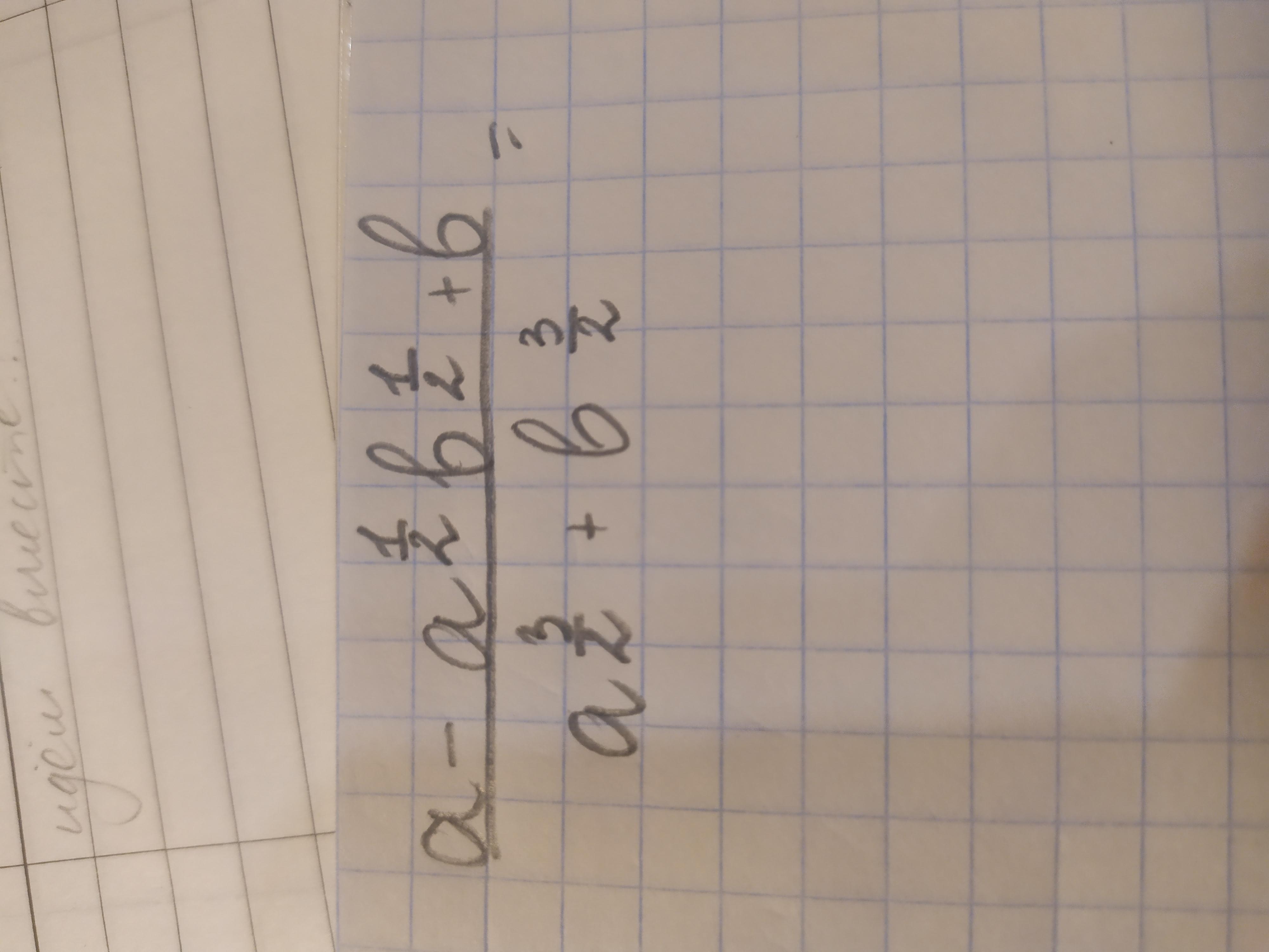 (a - a^1/2b^1/2 + b)/(a^3/2 + b^3/2) = (a - a^1/2b^1/2 + b)/(a^1/2 + b^1/2)(a - a^1/2b^1/2 + b) = 1/(a^1/2 + b^1/2)