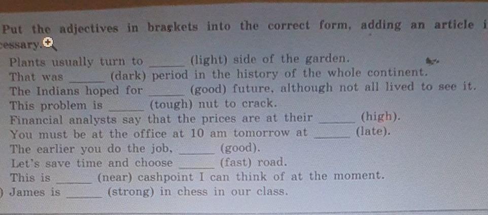 The lighter, the dark, a good, a tough, highest, latest, the better, the faster, the nearest, the strongest